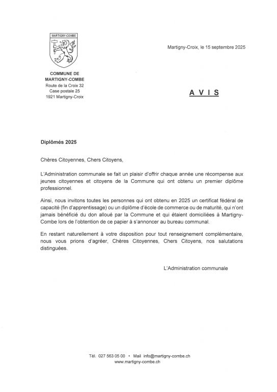 La Commune de Martigny-Combe est ravie de vous annoncer son intégration au programme eConstruction de l’Etat du Valais dès le 29 avril 2024.